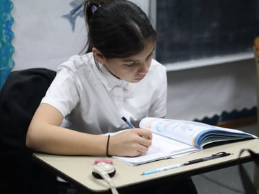 Focus on practicing independent study habits, reading for learning, and project completion skills. They learn grammar and expand their vocabulary through engaging stories and nonfiction selections. Their understanding of science and history expands, and they are challenged to think more deeply about the Bible stories they are learning. These grades use the Abeka curriculum.